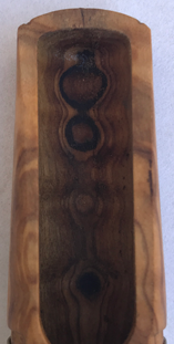 Das Olivenholz ermöglicht einen sehr schönen warmen, vollen Klang. Optisch ist das Instrument mit einer fast symetrischen hell/dunkel Maserung sehr ansprechend.