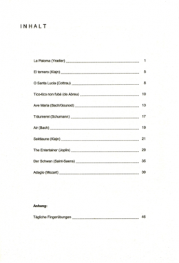 As well as works by Bach such as the Ave Maria and Air on a G String, it also includes compositions by Schumann, Cottrau and Mozart, but also The Entertainer by S. Joplin.